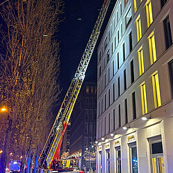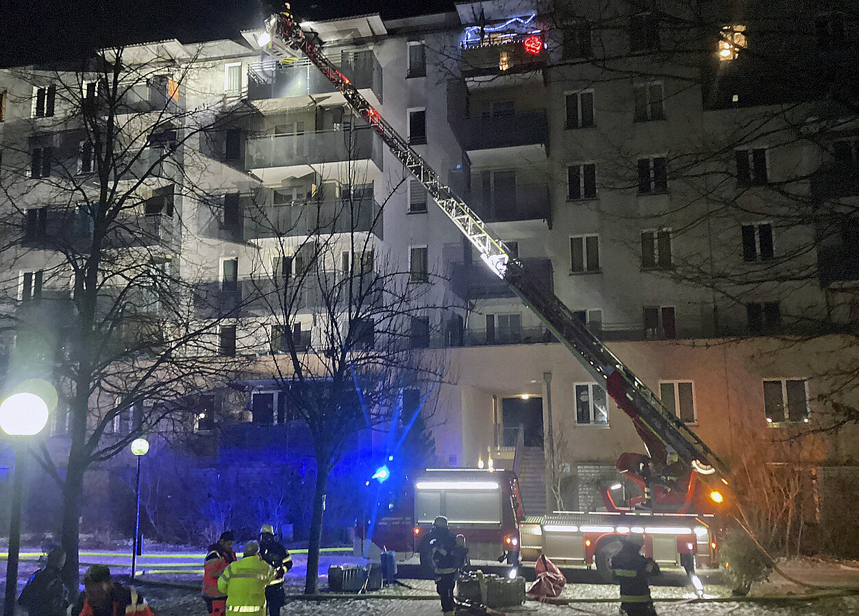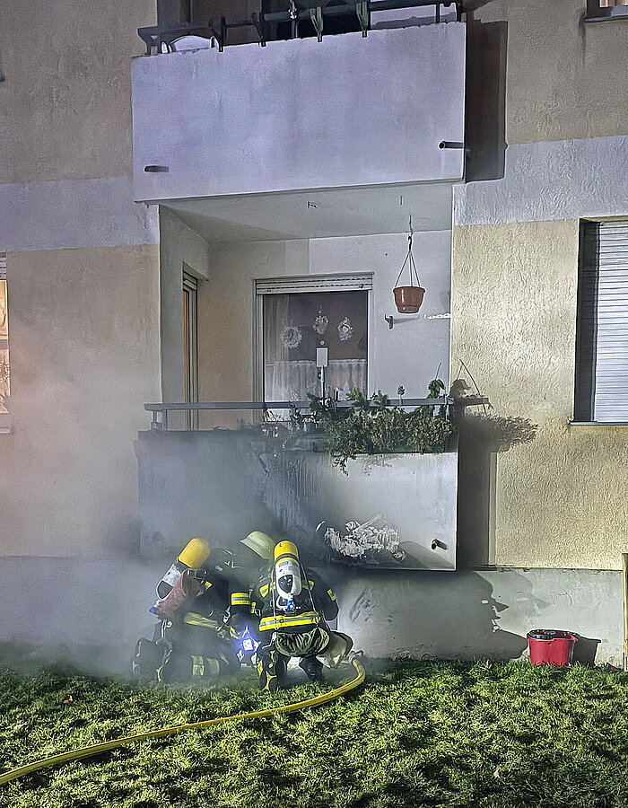 Zu einem dritten Balkonbrand gingen um 1.39 Uhr mehrere Meldungen ein, die bereits schilderten, dass im Peschlanger im siebten Geschoss ein Balkon brenne und auch die Flammen nach oben schlagen. Die Einsatzkräfte gingen parallel über das Treppenhaus und die Drehleiter vor. So konnten sie den Flammenüberschlag eingrenzen und den Brand löschen. Zahlreiche Bewohnerinnen und Bewohner wurden während der Löschmaßnahmen in Großraumrettungswägen betreut. Nach der Brandbekämpfung konnten alle wieder in Ihre Wohnungen, die Brandwohnung ist vorerst aber nicht bewohnbar.